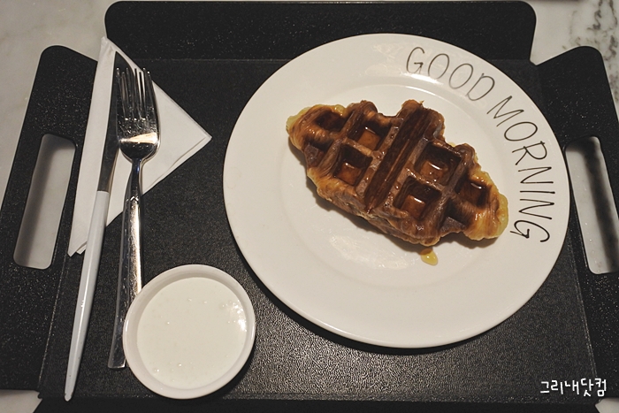 레몬에이드에 아직까지는 유일한 디저트 메뉴인 크로와상 와플을 주문했다.