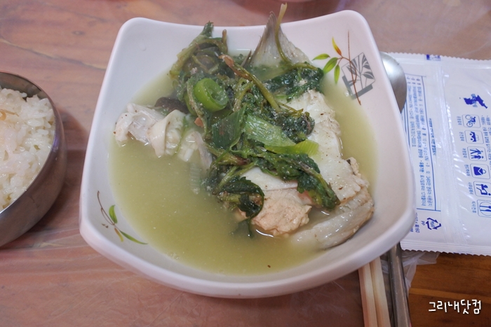 한냄비 푸짐하게 등장하는 도다리쑥국은 쑥의 향이 물씬나는 가운데 도다리의
