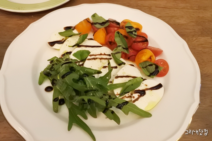 양이 넉넉한 카프레제는 방울토마토라서 먹기 편했고 치즈도 아주 훌륭했다.