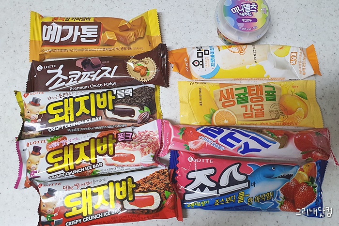 박사단팥빵. 갠춘 아이스크림 잔뜩 쓸어옴 ㅎㅎ 곰표 밀맥주. 우리 입맛엔 썩 쥬시쿨 청포도. 대존맛 정담은 샌드위치. 맛있었다. 이번시즌의 뚜레쥬르 초코파이하우스. 맛있는데 넘모비싸 힐러라면. 꽤 맛있었다. 열라면. 당신이 아는 그맛 꽃게랑면. 그닥 떡들 맛있게 먹었구요 커피를 쟁여놓으면 기분이 조크든요 루반도르. 부산진역 간김에 구입 유카스테라. 넘모 먹고싶었다구! 파리바게뜨. 상미종 매니아인줄(맞음) 홈플러스빵. 먹을만함 원당. 맛있는데 집에서 넘 멀다 베스킨. 알차게 혜택누림 딱히 특색있는 과자는 없었고 리티의 프링글스 쟁여두기