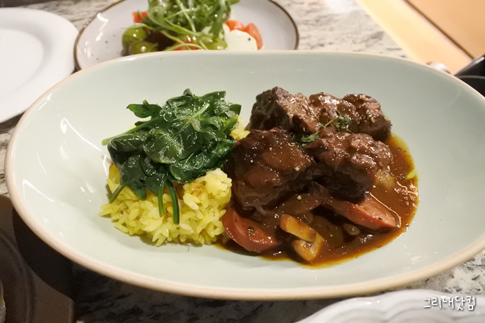 맛이었으며, 부드럽게 조리된 브레이징 비프는 사프란 라이스와 잘 어울렸다.