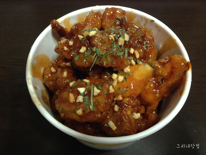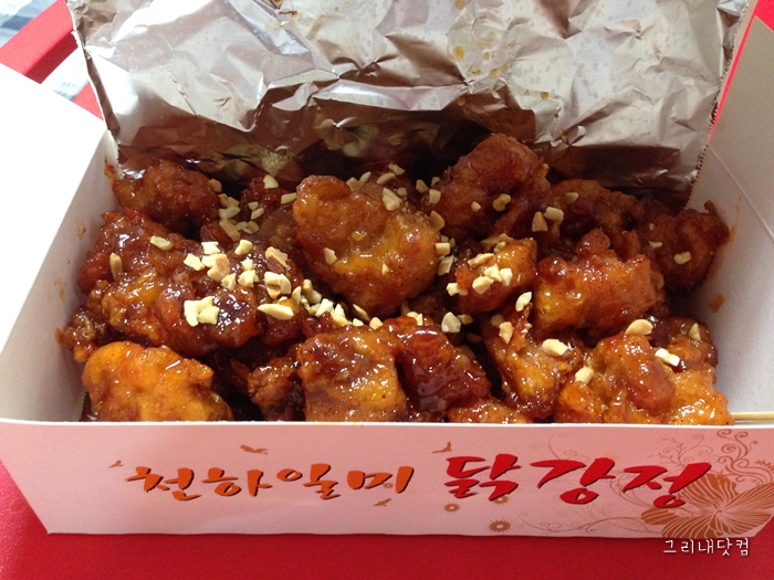 구디 가판대 닭강정. 박스에 적힌것처럼 천하일미 이기를 바랬으나..