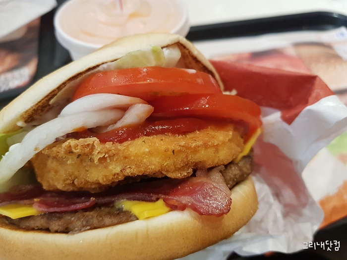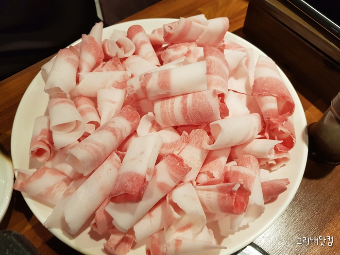 빛깔에 비해 돼지고기 특유의 풍미가 약한 반면에 양념 맛이 강한게 아쉬웠다.
