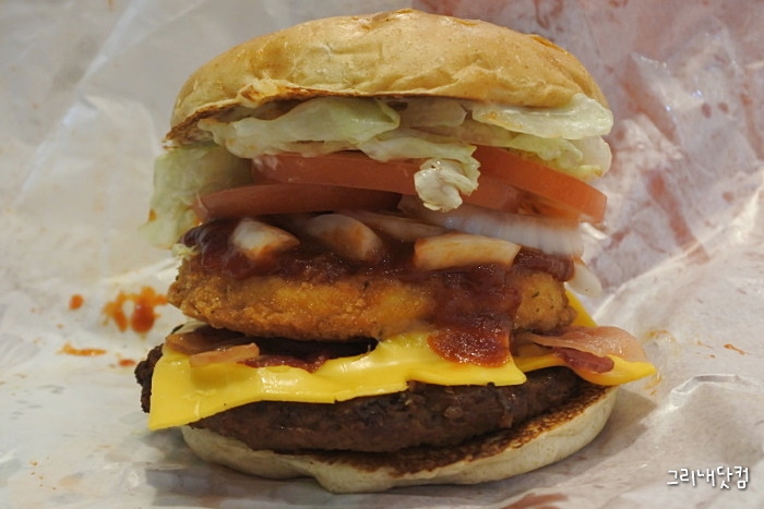 몬스터와퍼는 패티외에 치킨 베이컨 등등 소 돼지 닭이 모두 들어간 버거인데