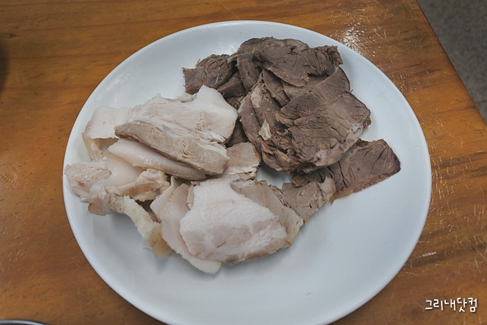 터프하게 올려진(담음새가 이쁘지는 않은)수육이랑 제육 역시