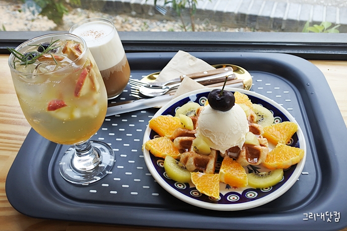 오펜슈페너와 청귤에이드와 요거트를 주문했다. 가격은 나름 적절한 편이었고