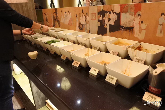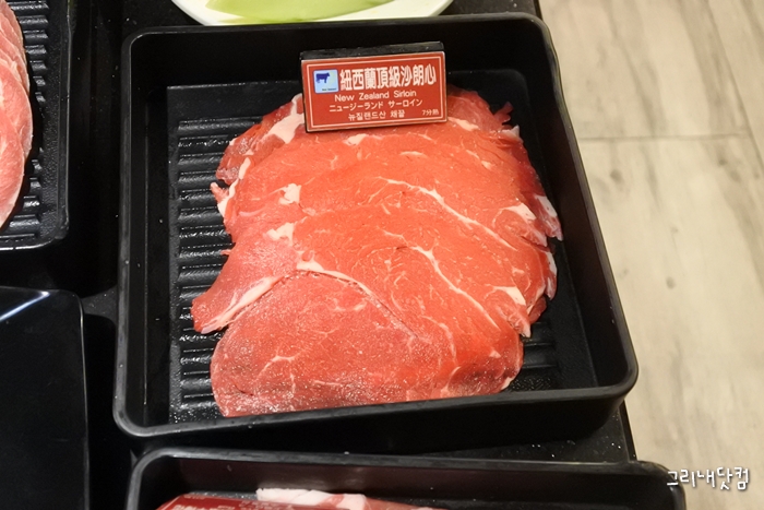 무한리필 방식의 훠궈지만 특이하게 먹을 고기를 4가지 선택하는 방식이었고