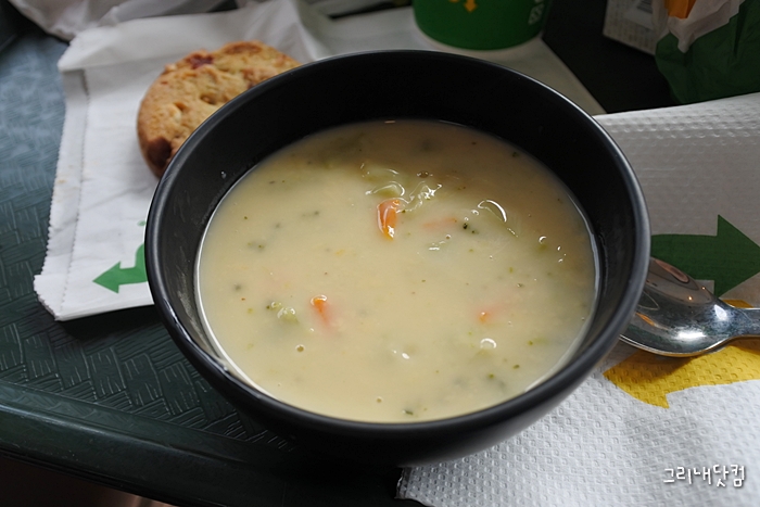 쿠키는 매번 먹고 가끔 수프나 웨지감자, 샌드위치를 샐러드로 바꿔서 먹는다.