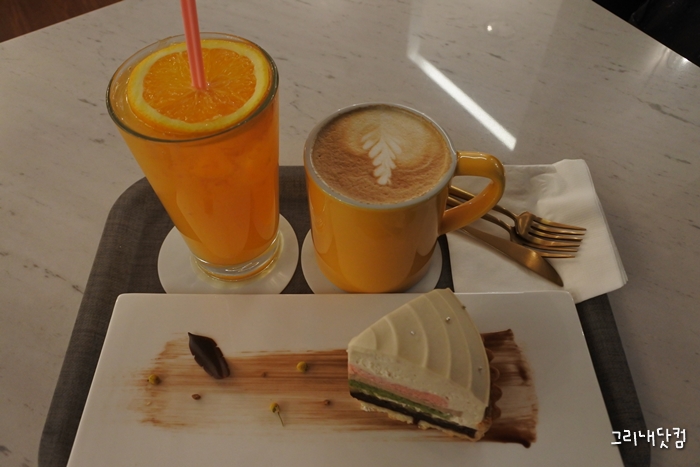 맨처음 방문할땐 카페라떼 레몬오렌지착즙주스와 얼그레이타르트를 주문했고
