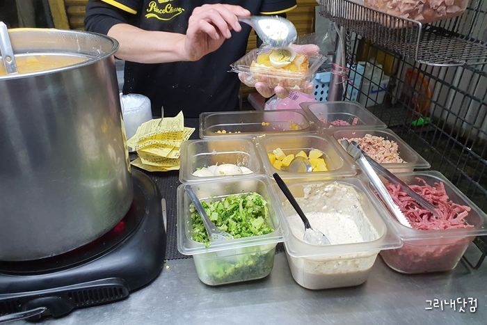 늦은저녁에 노점형식으로 있으며, 몇몇 매장에서 선물삼아 군것질도 같이했다.