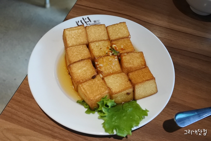 양념이 버무러진 맛인데 꽤 매콤했고 두부는 살살녹는 식감에 담백한 맛었고