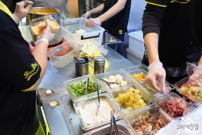 토핑들도 다 맛있었는데 특히 파인애플이 괜찮았고 일단 감자자체가 맛있었다.