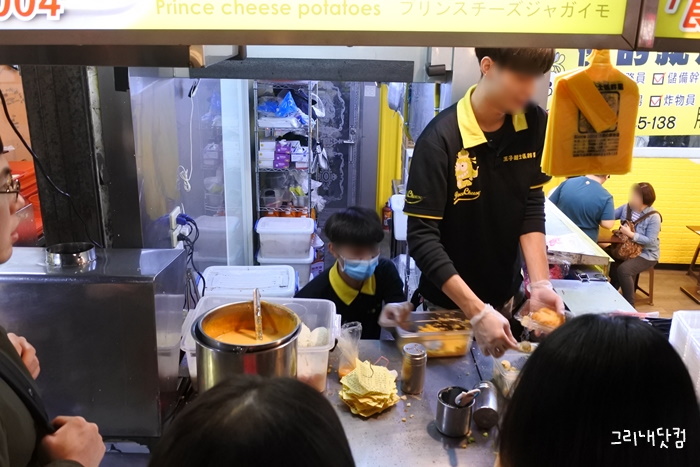 말그대로 치즈를 올린 감자로 스린역을 나오자마자 긴 대기줄을 마주하게된다.