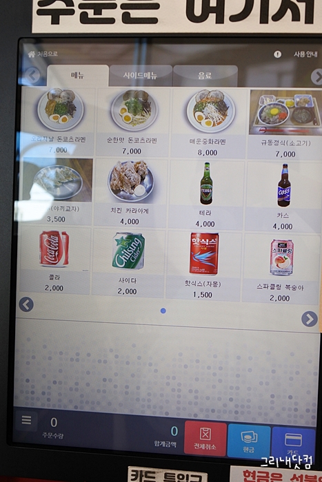 주문은 카라구치 맵기 2단계와(4단계까지 있다) 냉라멘과 오니기리