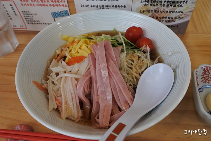 냉라멘은 생각했던 것과 살짝 다른 이미지인데 국물이 일단 깔끔하다.