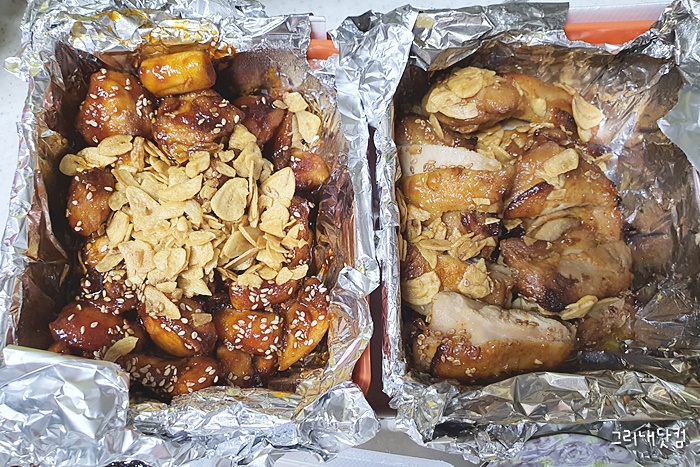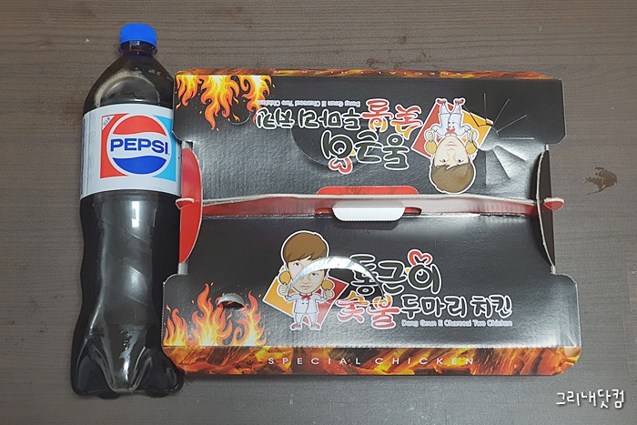 동근이 숯불두마리치킨. 맛있게 먹었다.