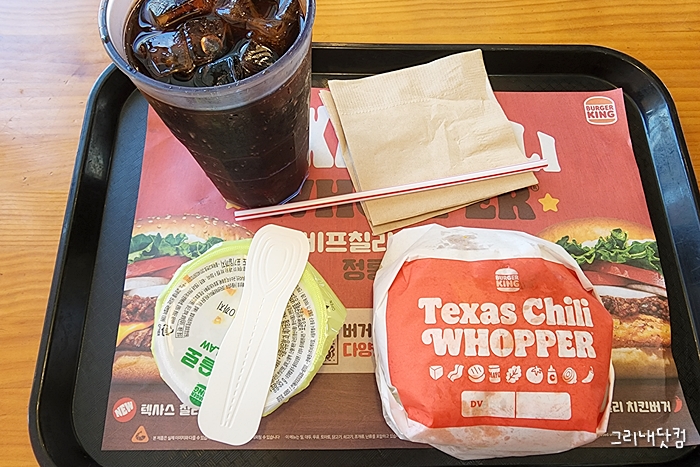 버거킹. 텍사스 칠리는 매우 별로 스태커가 훨 낫다