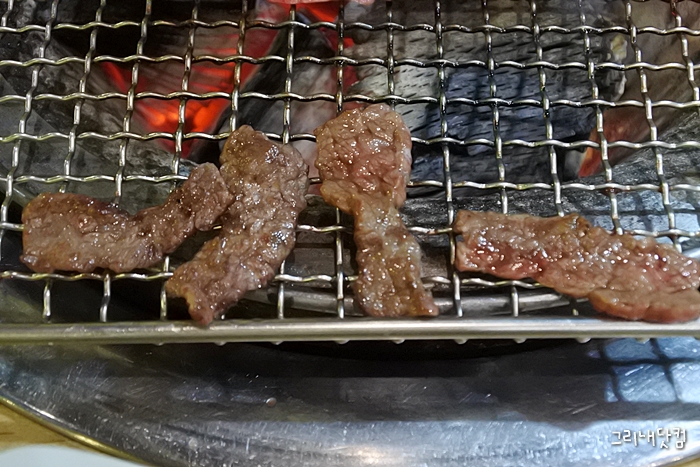 생등심은 무난했고, 갈비는 살짝 달았고, 숯 화력이 좋아 금방 익는건 좋았다.