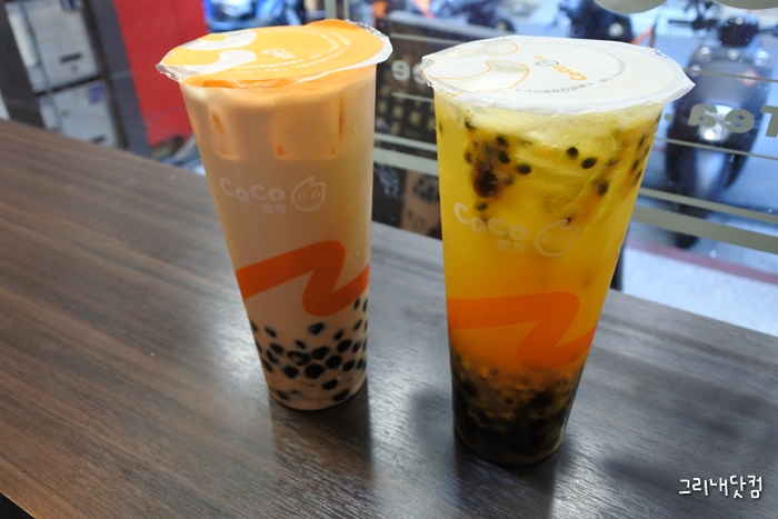 버블티는 익숙한 그맛이고, 트로피칼은 상큼하고 달콤하며 토핑도 맛있었다.