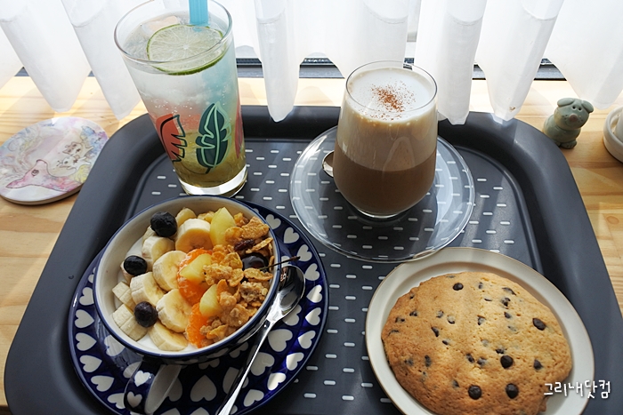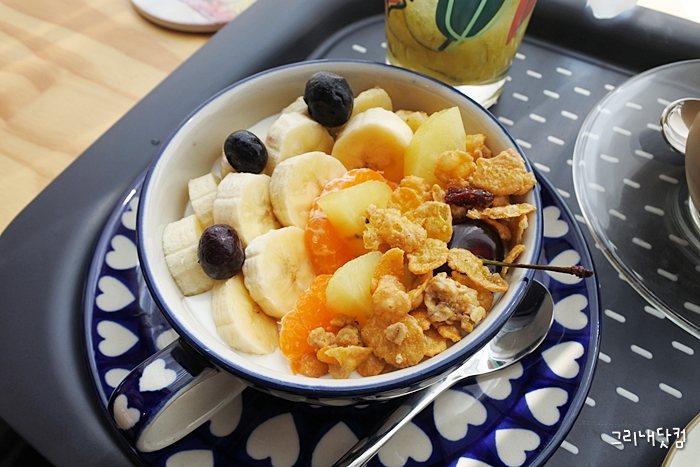 과일도 푸짐했으나 막상 과일이랑 잘 어울리지는 않고, 식감이 조금 거칠었다.