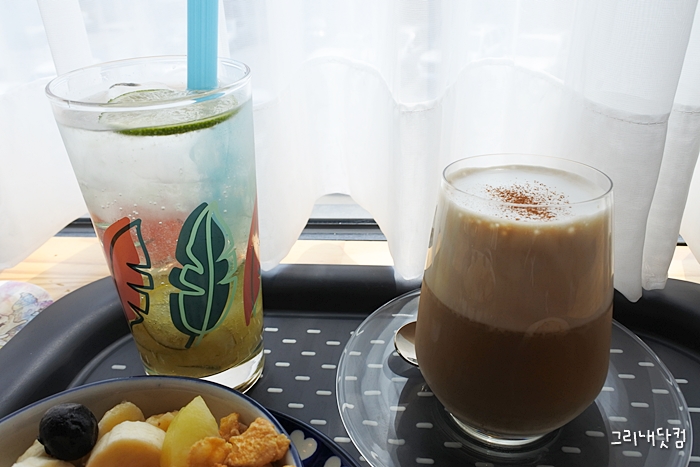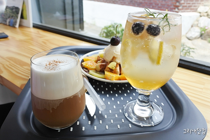 에이드는 약간 덜 달지만 꽤 상큼했고, 커피는 청량하고 산미가 도드라지는편.