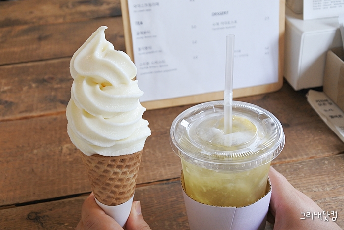 아이스아메리카노와 꿀자몽에이드를 주문했다. 일단 아이스크림은 우유맛이
