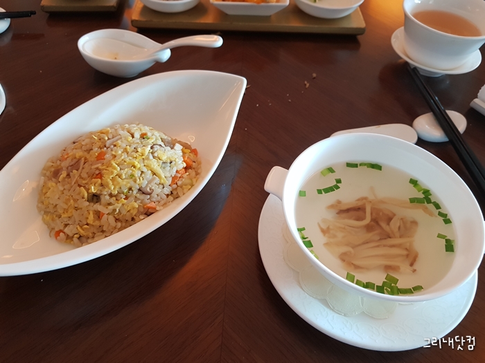 감안 1명만 전복으로 교체를 부탁드렸고. 식사는 기스면 짬뽕 볶음밥을 선택