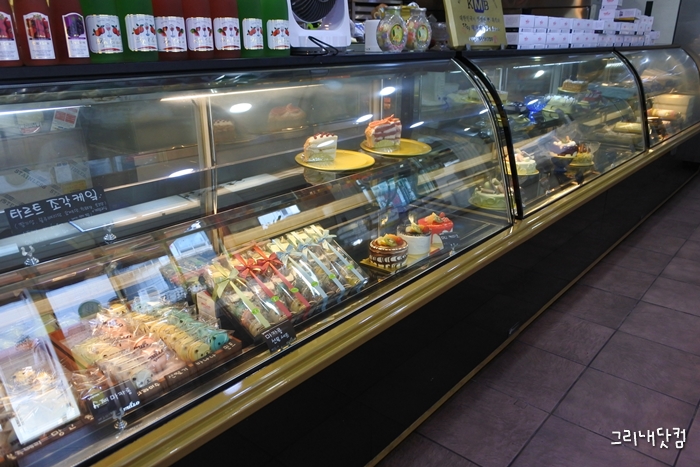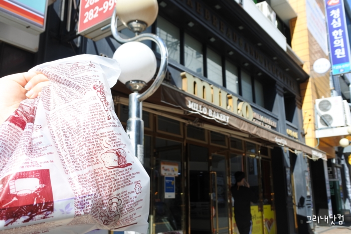 상남동 번화가에서 오래도록 자리를 지키고 있는 제과점. 이 복잡하고 하루가