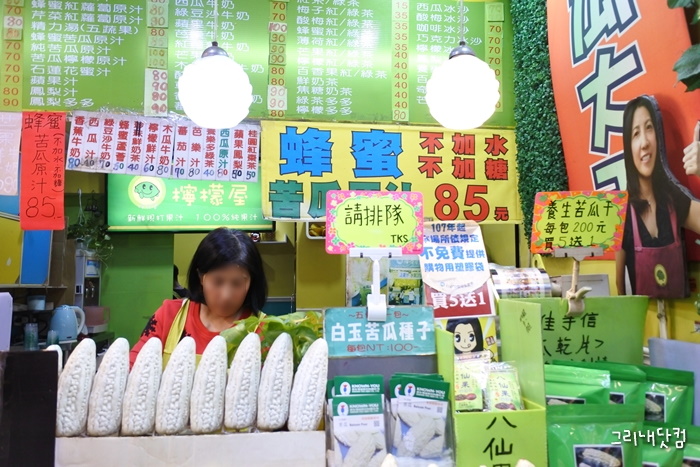 시먼의 한쪽에 자리잡고 있는 주스전문점으로 여주 라고 하는 과일의 주스를