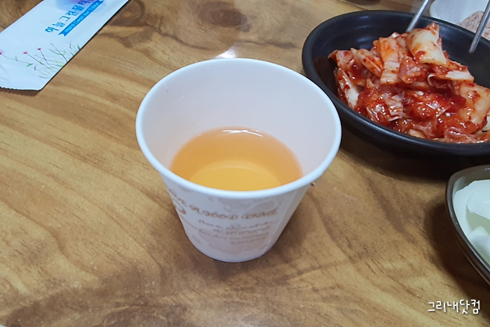 생수 대신에 데운 보리차를 내어 주셨는데 몸이 적절히 데워져서 아주 좋았다.