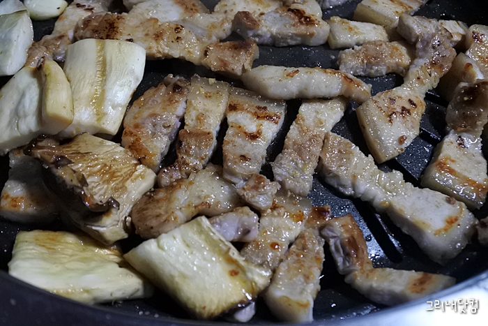 고기는 된장에 재어진 삼겹살인데 그러다보니 맛 자체가 조금 독특하긴 하다.