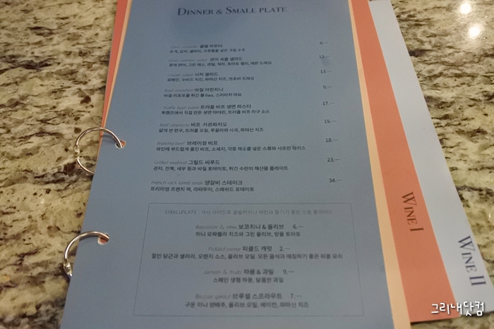 음식의 장르는 캐주얼 유러피안 다이닝을 표방하고 있으며 다행히도 메뉴들이