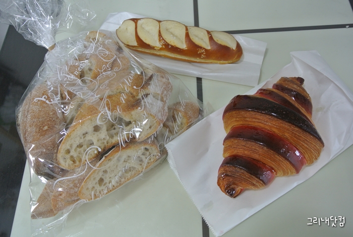 바게뜨는 풍미가 구수하고, 깜빠뉴는 적당히 달고 맛이 고급스러워서 좋았다.