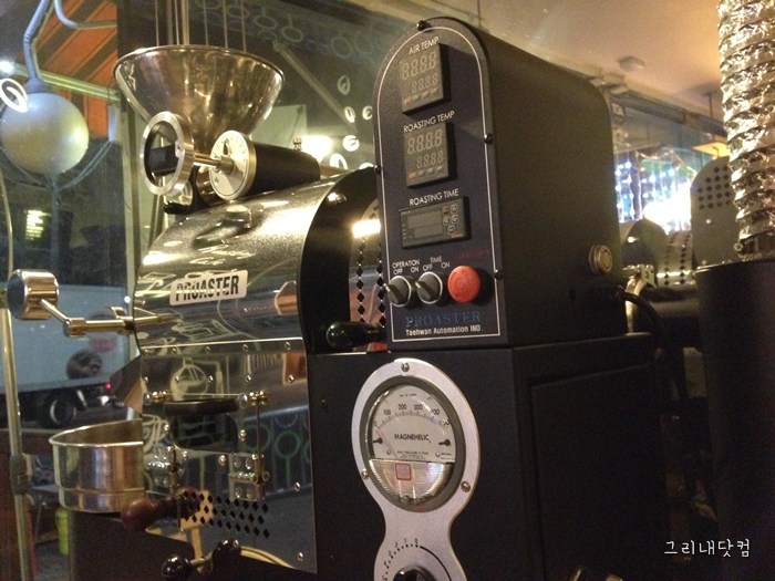 커다란 로스팅 기계가 자리잡고 있어서 카페안에 은은한 커피향이 퍼지는 곳