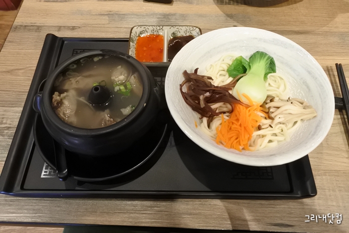 식감이 흐물거렸으며 반면에 국수는 꼬들꼬들해서 두가지 식감이 잘 어울렸다.