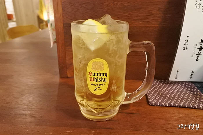 간단히 한잔하러 들른터라 하이볼과 오차에 교자와 가라아게및 모듬회를 주문