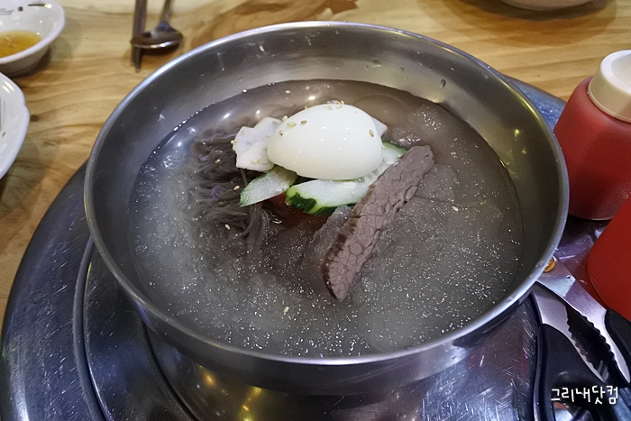 맞은편의 유명한 다른 밀면집과는 꽤 다른 스타일의 밀면이고 역시나 충분히