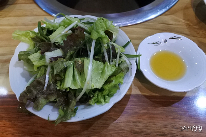 고기에 앞서 나온 반찬은 장아찌류가 많고 샐러드도 맛있어서 취향에 맞았다.